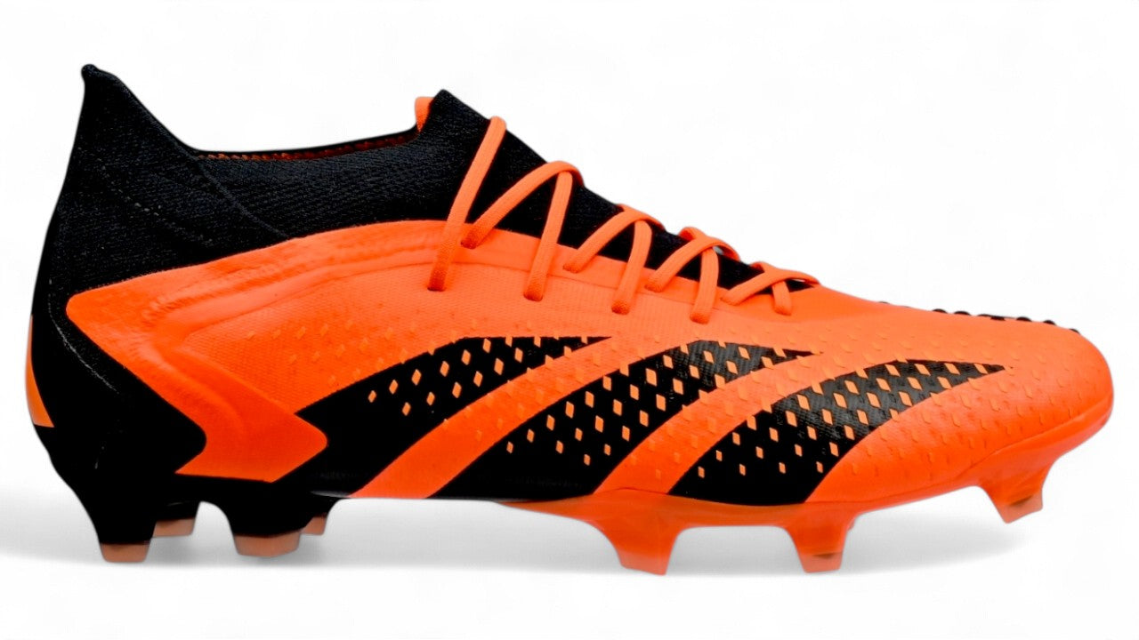 The Adidas Predator Accuracy.1 FG GW4572 (release year: 2023) is a firm ground football boot designed for precise shots and ball control. The upper made of high-definition texture and grip elements in the shooting area provides an improved ball feel. The lightweight TPU outsole with stud configuration offers optimal traction and stability on firm ground. The shoe collar with optimal fit encloses the foot for a secure hold and comfort.